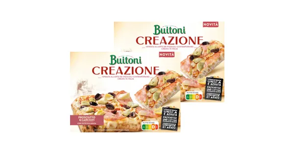 Pizza belegt mit Kochschinken, Artischocken, Oliven und Käse, tiefgefroren Die Buitoni Creazione Prosciutto bietet Ihnen eine köstliche Kombination aus feinem Schinken und hochwertigen Zutaten, die...
