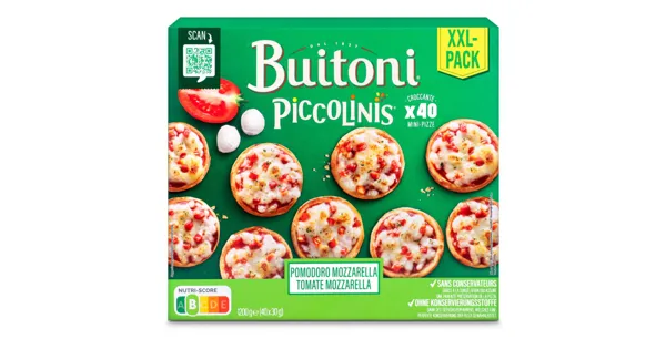 Die Buitoni Piccolinis Pizza Tomate Mozzarella bietet köstliche Mini-Pizzen mit einer feinen Kombination aus saftigen Tomaten und cremigem Mozzarella. Perfekt für den kleinen Hunger oder als Snack...