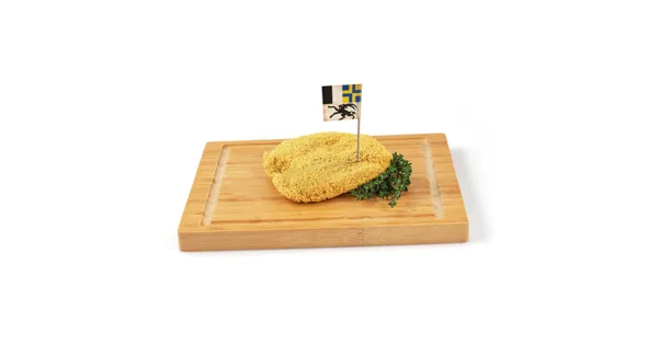 Schweinefleischzubereitung mit Käse und Rohschinken, paniert – Zutaten: Schweinefleisch 60% (Schweiz), KÄSE 20% (Schweiz), Paniermehl (WEIZENMEHL, Kochsalz, Hefe, Curcuma, Paprikaextrakt), Bündner Rohschinken 7% (Schweinefleisch, Kochsalz jodiert, Glucose, Gewürze, Antioxidationsmittel [E 301, E 331], Konservierungsstoff [E 252], Gewürzextrakte), Wasser, Panade (WEIZENSTÄRKE, Kochsalz jodiert, VOLLEIPULVER, Stärke, Gewürze, Verdickungsmittel [E 415, E 401], Glucose). Nicht für den Rohverzehr geeignet. Zutaten: Schweinefleisch 60% (Schweiz), KÄSE 20% (Schweiz), Paniermehl (WEIZENMEHL, Kochsalz, Hefe, Curcuma, Paprikaextrakt), Bündner Rohschinken 7% (Schweinefleisch, Kochsalz jodiert, Glucose, Gewürze, Antioxidationsmittel [E 301, E 331], Konservierungsstoff [E 252], Gewürzextrakte), Wasser, Panade (WEIZENSTÄRKE, Kochsalz jodiert, VOLLEIPULVER, Stärke, Gewürze, Verdickungsmittel [E 415, E 401], Glucose). Nicht für den Rohverzehr geeignet.