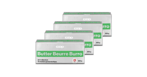 Butter, 82% Milchfett Coop Butter pasteurisiert. 250g. – Zutaten: Butter (aus pasteurisiertem RAHM). Zutaten: Butter (aus pasteurisiertem RAHM).