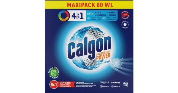 Das Calgon Pulver Konzentrierte Power 4in1 sorgt mit konzentrierter Kraft für eine hygienisch saubere Waschmaschine. Das Pulver mit Hygieneschutz schützt vor Kalkablagerungen, Schmutz und...