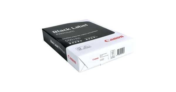 Canon Kopierpapier Black Label Premium A4 Box- weisses Druckerpapier- Papier im Format A4, 2'500 Blatt (5 x 500 Blatt)- Stärke 80g/m2- Materialeigenschaften FSC-zertifiziert- geeignet für Tintenstrahl-/Laserdrucker, Kopiergeräte und Faxgeräte