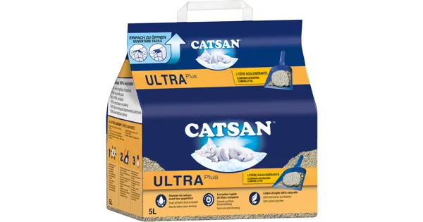 CATSAN™ ULTRA Plus Klumpstreu besteht aus besonders feinen, ultra-saugstarken Tonkörnchen. Flüssigkeit und Geruch werden in extra kleinen, festen Klumpen eingeschlossen, die bei der täglichen Reinigung einfach entsorgt werden können. So verspricht das Produkt eine deutlich längere Geruchskontrolle als herkömmliche geruchsbindende Katzenstreu. CATSAN™ ULTRA Plus Klumpstreu ist durch die spezielle Körnung ausgesprochen staubarm, haftet weniger an Katzenfell und schont die empfindlichen Pfötchen Ihrer Katze.