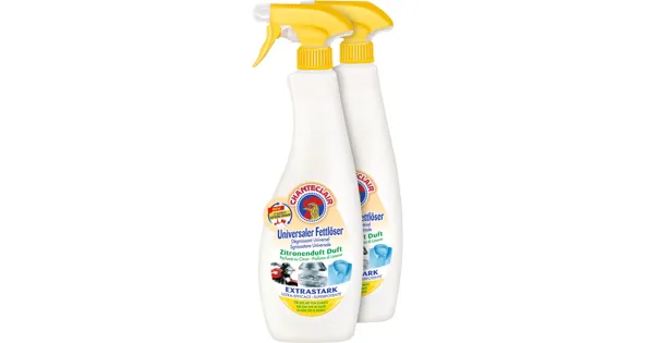 Der Universale Fettlöser mit Zitronenduft von Chanteclair ist ein hoch wirksamer Reiniger und eliminiert Verunreinigungen und Fett bei stark verschmutzten Kochplatten, Felgen und mehr.
