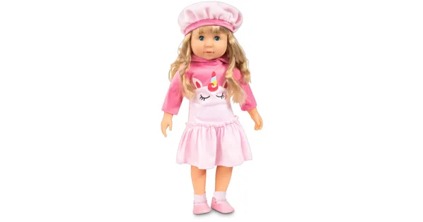 Charlene ist deine neue beste Freundin! Sie ist eine wunderschöne 46 cm grosse Weichkörperpuppe mit Schlafaugen und 2 Funktionen. Charlene will spielen, singen, mit ihr malen oder du kannst ihr die Haare machen. Sie trägt ein schönes weiches rosa Kleid und einen Mantel mit passender Mütze, Socken und Schuhen. Haarspangen, ein Komp, eine Bürste, ein Koffer und Aufkleber sind im Set enthalten. Geliefert in einer schönen Showbox.