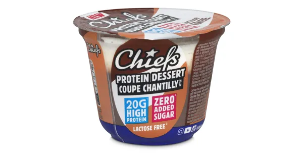 Laktosetreier Pudding mit Topping, mit Milchorctein, mit Süssungsmitteln. Schokoladengeschmack. 2,3 % Fett im Milchanfeil – Zutaten: entrahmte MILCH, 8,0 % MILCHPROTEIN, SAHNE, 1,5 % Kakaopulver, modifizierte Stärke, Verdickungsmittel: Carrageen, Cellulosegummi; 0,2 % fettarmes Kakaopulver, Speisegelatine (Rind), Laktase, Emulgator: Milchsäureester von Mono- und Diglyceriden von Speisefettsäuren; natürliches Aroma, Süssungsmittel: Acesulfam K, Sucralose. Topping mit Stickstoff aufgeschlagen. Zutaten: entrahmte MILCH, 8,0 % MILCHPROTEIN, SAHNE, 1,5 % Kakaopulver, modifizierte Stärke, Verdickungsmittel: Carrageen, Cellulosegummi; 0,2 % fettarmes Kakaopulver, Speisegelatine (Rind), Laktase, Emulgator: Milchsäureester von Mono- und Diglyceriden von Speisefettsäuren; natürliches Aroma, Süssungsmittel: Acesulfam K, Sucralose. Topping mit Stickstoff aufgeschlagen.