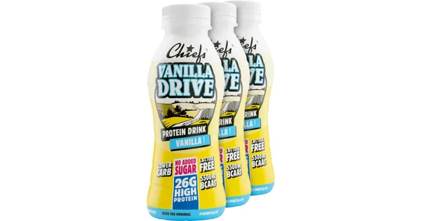 Entdecke den idealen Begleiter für deinen aktiven Lebensstil mit dem Chiefs-Protein Milk Vanilla Drive. Diese köstliche Proteinmilch liefert dir 26 g hochwertiges Eiweiss pro Flasche, perfekt für...