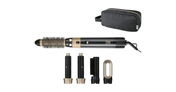 2 Heizstufen und 1 Gebläsestufe sowie Cool-Shot-Option zur Fixierung der Frisur , Inkl. 2x Lockenaufsatz, 1x Halbrundbürste, 1x Rundbürste, 1x Haartrockneraufsatz und 1x Transporttasche , Pro Set