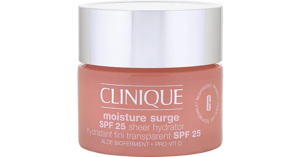 Clinique Moisture Surge Sheer Hydrator SPF 25 ist eine intensive Feuchtigkeitspflege mit Lichtschutzfaktor. Dank hochwertiger Wirkstoffe wie Aloe Bioferment, Hyaluronsäure und Pro-Vitamin D wird die Haut nicht nur mit Feuchtigkeit versorgt, sondern auch vor schädlichen Umwelteinflüssen geschützt. Nebst UV-Schutz bietet die leichte Textur der Haut auch Schutzt vor Blaulicht und anderen Einflüssen. Die Haut wird gestärkt, geglättet und bekommt einen strahlenden Teint.
