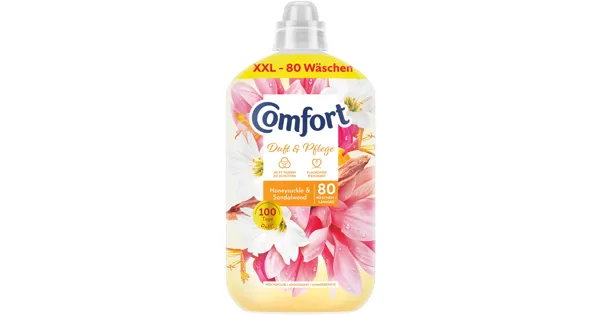 Mit dem flüssigen Weichspülkonzentrat Comfort Honeysuckle & Sandalwood werden deine Kleider flauschig weich und erhalten einen Duft nach Geissblatt und Sandelholz. Der Weichspüler mit Farb- und...