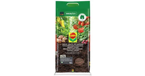 Qualitätserde aus wertvollen, natürlichen und rein organischen Inhaltstoffen. Die COMPO Kräuter-, Tomaten- und Gemüseerde fördert ein gesundes Pflanzenwachstum und lässt schmackhafte, aromatische Tomaten, Gemüsekulturen und Kräuter heranwachsen. Der besonders hohe Humusanteil der Erde führt zu einer optimalen Nährstoff- und Wasserversorgung der Pflanzen und fördert gleichzeitig die Standfestigkeit der Kulturen. Die lockere Struktur der Erde begünstigt eine optimale Durchwurzelung und Luftführung.