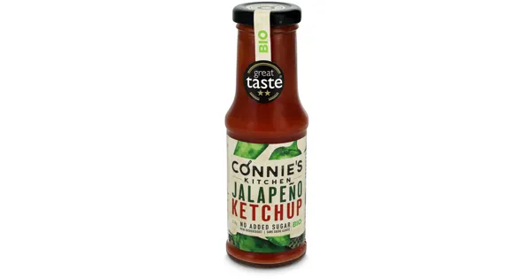 Mild-scharfes Bio-Tomaten Ketchup ohne Zuckerzusatz -Natürlich gesüsst mit ganzen Früchten & Gemüse -100% Bio -Hergestellt in der Schweiz -Keine Süss- oder Zusatzstoffe -Ballaststoffquelle | Glutenfrei | Vegan – Zutaten: Tomatenpüree 31%*, Wasser, Datteln*, weisser Balsamicoessig (Weinessig*, Traubenmost konzentriert*), Apfelmus*, Kürbis*, Jalapenos 1.8%*, Meersalz, Randenpulver*, Knoblauch*, Piment*. *aus biologischer Landwirtschaft. Zutaten: Tomatenpüree 31%*, Wasser, Datteln*, weisser Balsamicoessig (Weinessig*, Traubenmost konzentriert*), Apfelmus*, Kürbis*, Jalapenos 1.8%*, Meersalz, Randenpulver*, Knoblauch*, Piment*. *aus biologischer Landwirtschaft.