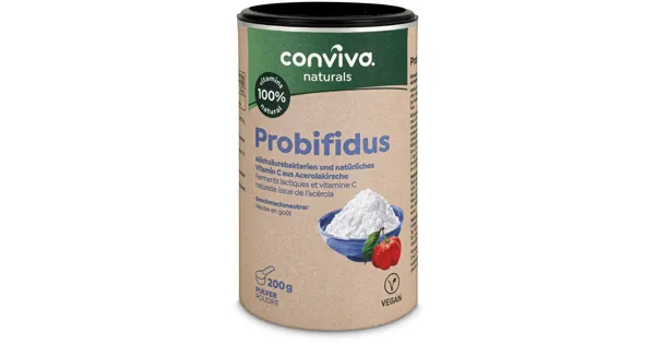 Nahrungsergänzungsmittel mit Milchsäurebakterien Bifido- und Milchsäurebakterien: 6.000.000.000 KBE / 10g Mit Milchsäurebakterien und natürlichem Vitamin C aus Acerolakirsche – Zutaten: Maltodextrin, Oligofructose, Reismehl, Acerolasaftpulver 2%, Bifidobacterium lactis-Kulturen, Lactobacillus acidophilus-Kulturen. Zutaten: Maltodextrin, Oligofructose, Reismehl, Acerolasaftpulver 2%, Bifidobacterium lactis-Kulturen, Lactobacillus acidophilus-Kulturen.