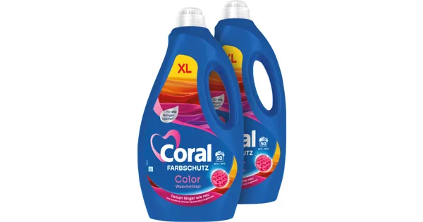 Das Flüssigwaschmittel Optimal Color von Coral pflegt die bunten Textilien. Es reinigt sanft, schont die Fasern, erhält und belebt die leuchtenden Farben. Die Kleider erstrahlen so in neuem Glanz.