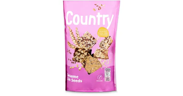 Dauerbackware mit Sesam und Leinsamen Die Country Cracker Sesam & Leinsamen bieten eine knusprige Mischung aus nussigem Sesam und aromatischen Leinsamen. Ideal für ein ausgewogenes Frühstück oder...