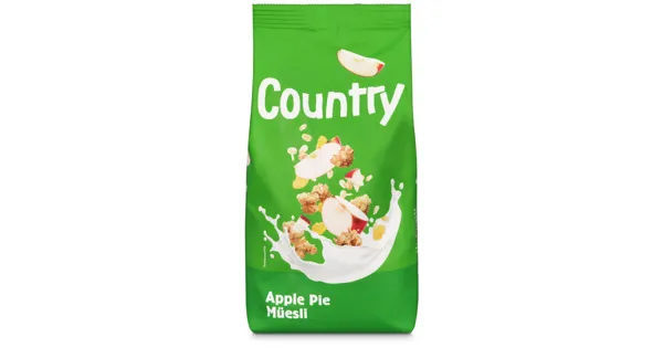 Knuspriges Müesli mit Äpfeln – Zutaten: HAFERFLOCKEN, Sonnenblumenöl, Getreidecrispies 9% (Mais, Reis, Zucker, WEIZENMEHL, GERSTENMALZ, fettarmes Kakaopulver, Kochsalz), Cornflakes 8% (Mais, Kochsalz, GERSTENMALZ), WEIZENMEHL, Zucker, Oligofructose, Apfelflocken 4,5% (Äpfel, Reismehl, Apfelsaftkonzentrat), Apfelsaftkonzentrat 4,5%, Äpfel 4%, Kokosflocken 3,5%, Meersalz, Aroma. Kann Spuren von DINKEL, ROGGEN enthalten. Zutaten: HAFERFLOCKEN, Sonnenblumenöl, Getreidecrispies 9% (Mais, Reis, Zucker, WEIZENMEHL, GERSTENMALZ, fettarmes Kakaopulver, Kochsalz), Cornflakes 8% (Mais, Kochsalz, GERSTENMALZ), WEIZENMEHL, Zucker, Oligofructose, Apfelflocken 4,5% (Äpfel, Reismehl, Apfelsaftkonzentrat), Apfelsaftkonzentrat 4,5%, Äpfel 4%, Kokosflocken 3,5%, Meersalz, Aroma. Kann Spuren von DINKEL, ROGGEN enthalten.