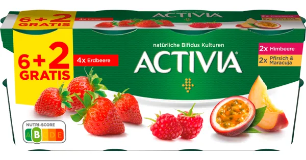 Erdbeere, Himbeere, Pfirsich & Maracuja, probiotisch, 8 x 115 g