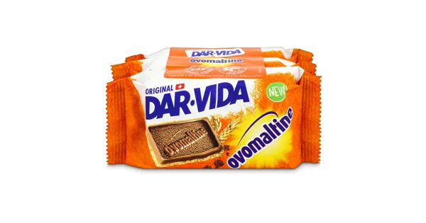 Vollkorncracker mit Täfelchen aus Schweizer Milchschokolade (56 %) mit malzhaltigem Getränkepulver Ovomaltine Knusprige Vollkorn-Cracker mit feiner Schweizer Milchschokolade mit Ovomaltine. – Zutaten: WEIZENVOLLKORNSCHROT 35 %, Zucker, Kakaobutter, malzhaltiges Getränkepulver Ovomaltine 9 % (GERSTENMALZEXTRAKT 4.6 %, kondensierte MAGERMILCH, kondensiertes MILCHSERUM, fettarmes Kakaopulver, Zucker, Fruktose, Mineralstoffe (Magnesiumcarbonat, Dicalciumphosphat),Rapsöl, Vitamine (E, C, Thiamin, Riboflavin, Niacin, B6, Folsäure, B12, Biotin, Pantothensäure), Speisesalz, Aroma (Vanillin)), VOLLMILCHPULVER, Kakaomasse, Rapsöl 3.1 %, MAGERMILCHPULVER, HASELNÜSSE, Meersalz, Hefe, Emulgator (SOJALECITHIN), GERSTENMALZ, Backtriebmittel (Natriumcarbonate), natürliche Aromen. Kann Spuren von MANDELN enthalten. Zutaten: WEIZENVOLLKORNSCHROT 35 %, Zucker, Kakaobutter, malzhaltiges Getränkepulver Ovomaltine 9 % (GERSTENMALZEXTRAKT 4.6 %, kondensierte MAGERMILCH, kondensiertes MILCHSERUM, fettarmes Kakaopulver, Zucker, Fruktose, Mineralstoffe (Magnesiumcarbonat, Dicalciumphosphat),Rapsöl, Vitamine (E, C, Thiamin, Riboflavin, Niacin, B6, Folsäure, B12, Biotin, Pantothensäure), Speisesalz, Aroma (Vanillin)), VOLLMILCHPULVER, Kakaomasse, Rapsöl 3.1 %, MAGERMILCHPULVER, HASELNÜSSE, Meersalz, Hefe, Emulgator (SOJALECITHIN), GERSTENMALZ, Backtriebmittel (Natriumcarbonate), natürliche Aromen. Kann Spuren von MANDELN enthalten.
