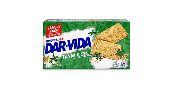 Cracker mit Thymian & Meersalz DAR-VIDA Thymian & Salz Family Pack 9 Portionen bietet neun Portionen knuspriger Cracker, die mit Thymian und einer Prise Salz verfeinert sind. Dank der praktischen...
