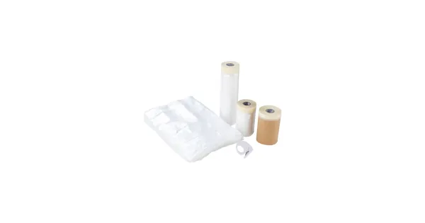 • Papierrolle: 18 cm × 20 m, • Folienrollen: 2.7 m × 10 m und 0.55 m × 20 m, • Abdeckfolien, Doppelpackung: 4 × 5 m, und • Spezialschneider: für Folien und Papier