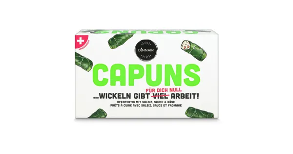5 Stück Capuns mit Salsiz (Fleischerzeugnis aus Schweizer Rind- und Schweinefleisch), tiefgekühlt – Zutaten: VOLLMILCH 27 %, Wasser, Mangold, HARTWEIZENDUNST, MAGERQUARK, Salsiz 5.9 %...