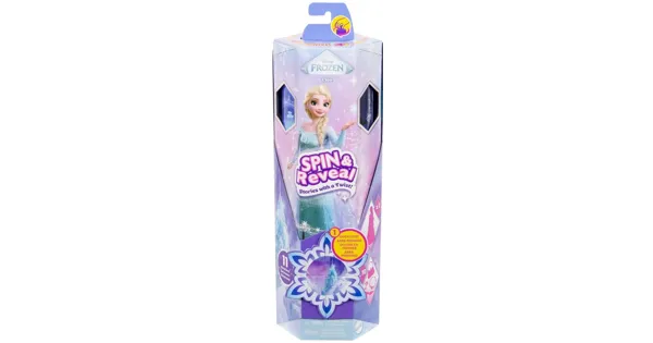 Soires und 5 Aufkleber verbergen. Zum Schluss können sie eine Elsa-Modepuppe in einem vom Film inspirierten Outfit enthüllen! Ausserdem können Kinder die Szene mit Stickern dekorieren und versteckte Objekte entdecken. Die Puppe kann nicht von allein stehen. Abweichungen in Farbe und Gestaltung vorbehalten. Das Auspacken der Elsa-Puppe aus Disneys „Die Eiskönigin“ hat mit diesem Disney Die Eiskönigin Spin & Reveal etwas Magisches an. sich! Beim Aufklappen der Schlossklappe offenbart sich Kindern eine Szene zum Spielen, mit einer lustigen Aktivität und Umrissen für Aufkleber. Danach können sie die Verpackung drehen, um 5 Überraschungstüten zum Vorschein zu bringen, in denen sich 5 Acces