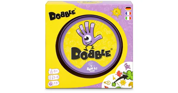 Dobble, ein Spiel mit Atmosphäre und ReflexenDobble ist ein Spiel, das Ihre Schnelligkeit und Ihre Beobachtungsgabe testet. Das Spiel enthält 55 runde, bunte Karten, auf denen sich 8 verschiedene Illustrationen befinden. Jede Karte hat ein Symbol mit einer anderen Karte gemeinsam. Das Ziel ist einfach: Sei der Erste, der zwei identische Zeichnungen findet.Dobble, ein 5-in-1-SpielMit Dobble spielen Sie nicht nur ein einziges Spiel, sondern eine Reihe von Minispielen. Das Spiel bietet 5 Varianten: der Höllenturm, das vergiftete Geschenk, der Brunnen, die heisse Kartoffel und Schnapp sie dir alle. Je nachdem, welche Variante Sie spielen, müssen Sie entweder die meisten Karten sammeln oder im Gegenteil Ihre Karten loswerden, indem Sie als Erster das gemeinsame Symbol finden. Aber egal, welches Minispiel Sie spielen, um zu gewinnen, müssen Sie Ihre Reflexe und Ihren Sinn für Details optimal kombinieren.Dobble, ein Spiel, das man überall hin mitnehmen kannMit seiner kleinen runden Metalldose wird Dobble Ihr bester Begleiter sein, um sich bei Abenden mit Freunden oder der Familie zu amüsieren.