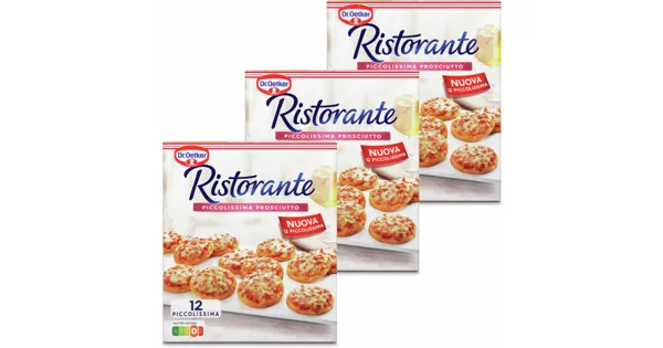 Mini-Pizza reich belegt mit Tomaten, Schinken und Käse auf knusprig dünnem Boden, tiefgefroren Die Dr. Oetker Piccolissima Prosciutto ist eine köstliche Tiefkühlpizza, die mit feinem Prosciutto und aromatischem Käse belegt ist. Die sorgfältige Auswahl der Zutaten garantiert ein intensives Geschmackserlebnis. Perfekt für eine schnelle und unkomplizierte Mahlzeit. – Zutaten: WEIZENMEHL, Wasser, 19% passierte Tomaten, 16% KÄSE (schnittfester MOZZARELLA, EMMENTALER), 16% gekochter Hinterschinken (Schweinefleisch, Salz, Dextrose, Zucker, Stabilisatoren (Diphosphate, Triphosphate, Natriumnitrit), Antioxidationsmittel (Natriumascorbat, Extrakt aus Rosmarin), Rauch), Rapsöl, Salz, Hefe, HARTWEIZENGRIESS, Zucker, GERSTENMALZEXTRAKT, Kräuter, Zwiebel, Paprika, Knoblauch,schwarzer Pfeffer, Dextrose. Kann enthalten: SOJA, SENF. Zutaten: WEIZENMEHL, Wasser, 19% passierte Tomaten, 16% KÄSE (schnittfester MOZZARELLA, EMMENTALER), 16% gekochter Hinterschinken (Schweinefleisch, Salz, Dextrose, Zucker, Stabilisatoren (Diphosphate, Triphosphate, Natriumnitrit), Antioxidationsmittel (Natriumascorbat, Extrakt aus Rosmarin), Rauch), Rapsöl, Salz, Hefe, HARTWEIZENGRIESS, Zucker, GERSTENMALZEXTRAKT, Kräuter, Zwiebel, Paprika, Knoblauch,schwarzer Pfeffer, Dextrose. Kann enthalten: SOJA, SENF.