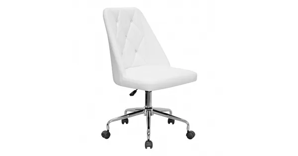 Der Drehstuhl Milan wirkt dank seiner spannenden Rückenlehne luxuriös und elegant. Die eingesetzten künstlichen Kristalle mit Abnähern kommen auf dem weissen Kunstleder besonders gut zur Geltung. Die Höhe der Sitzfläche kann dank dem integriertem Gaslift jederzeit individuell angepasst werden. Der Stuhl ist in alle Richtungen drehbar und kann durch die Rollen einfach hin und her geschoben werden. Er eignet sich als Bürostuhl, Esszimmerstuhl wie auch als Sitzgelegenheit vor einem Schminktisch.