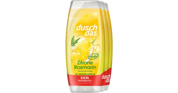 Das Duschdas Duschgel Zitrone & Rosmarin erfrischt mit seinem belebenden Duft und bietet eine nachhaltige Verpackung aus 100% recyceltem Plastik. Es schäumt schnell auf, reinigt sanft und hinterlässt ein frisches Hautgefühl. Duschdas liefert zuverlässig gute Qualität und revitalisiert Körper und Geist. Hol dir mit Duschdas frische Energie für den Tag.