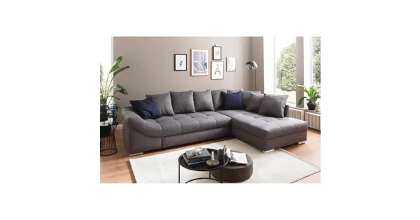 Die Polstergarnitur Baccara bietet Platz zum Entspannen und dank ihrer Bettfunktion eine Übernachtungsmöglichkeit für spontanen Besuch. Mit ihrem zeitlosen Design passt sie sich deinem Einrichtungsstil an. Dank der aus formstabilem Komfortschaum Polsterung mit dauerelastischer Wellenunterfederung sorgt diese Polstergarnitur für maximalen Komfort. Der Rücken der Polstergarnitur ist mit Echtstoff bezogen, was mehr Möglichkeiten beim Einrichten bietet. Das Sofa wird mit acht Rückenkissen in Grau und zwei Zierkissen dunkelblau geliefert.