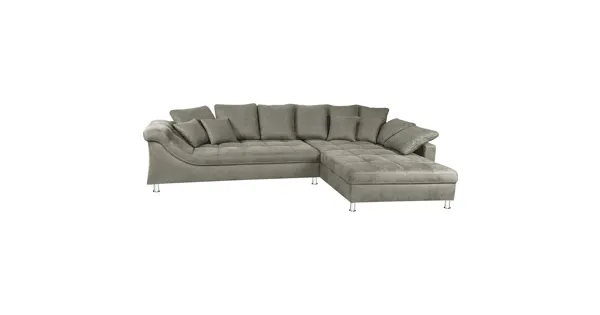 Diese Polsterecke mit Recamiere ist ein attraktiver Wohnmittelpunkt mit tollen Vorzügen. Das schicke Design macht sie zum Blickfang in jedem Wohnzimmer und bietet ein rundum angenehmes Sitz- und Liegegefühl, das keine Wünsche offen lässt. Ein stabiles Gestell aus Holzwerkstoffen, eine dauerelastische Wellenunterfederung und eine atmungsaktive Polsterung machen das komfortable Ecksofa aus. Lose Rücken- und Armlehnkissen sorgen dabei für den besonderen Wohlfühlfaktor. Ganz nach persönlichem Bedarf und räumlichen Voraussetzungen ist die einladende Recamiere rechts- oder linksseitig montierbar. Die Chromfüsse runden das moderne Gesamtbild der Couch stilsicher ab. Rundum in Originalbezug und somit frei im Raum stellbar.