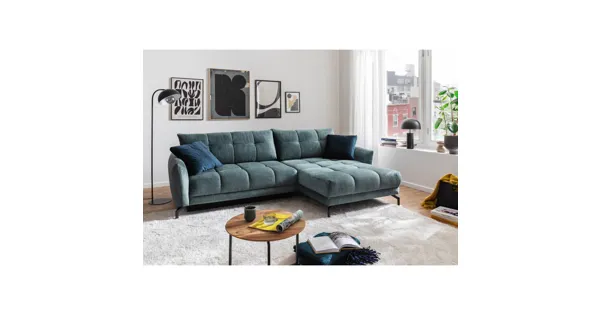 Der Bezug aus hochwertigem Stoff Dolce in Petrol verleiht dem Sofa eine moderne, elegante Ausstrahlung. Die schwarz matten Kunststofffüsse runden das Design stilvoll ab. Und das Beste: Die Recamière ist wahlweise links oder rechts montierbar, sodass du das Sofa flexibel an deinen Raum anpassen kannst.