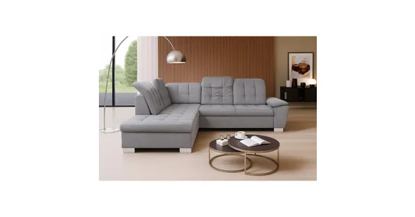 Entdecke mit der Polstergarnitur Nicole in edlem Grau eine neue Dimension des Sitzkomforts und schaffe einen stilvollen Mittelpunkt in deinem Wohnzimmer. Die Recamière auf der linken Seite bietet dir Platz zum Entspannen und Abschalten. Die verstellbaren Kopfteile passen sich deinen Bedürfnissen an. Im Handumdrehen verwandelst du das Ecksofa in eine Liegewiese, und der integrierte Bettkasten überrascht mit extra Stauraum. All diese praktischen Features sorgen dafür, dass du jederzeit flexibel bleibst – ob beim Lesen, Relaxen oder bei Gästebesuch. Was willst du mehr?