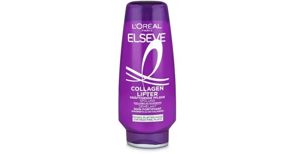 Haarspülung Elseve Collagen Lifter Kräfigende Pflegespülung liefert in Kombination mit Shampoo und Spray lang anhaltendes Volumen und Glanz. Cremige Formel, angereichert mit Kollagen-AS-Fragmenten, um den Ansatz zu liften und die volumisierende Wirksamkeit zu maximieren - Hydriert das Haar, während es kräftigt, ohne zu beschweren. Bietet mehr Volumen, das tagelang hält. Angereichert mit Birnen-, Zitrus- und Rosenduft für ein sinnliches Haarpflegeerlebnis. Einfache Anwendung: Auf nasses Haar auftragen, eine Minute einwirken lassen, gründlich ausspülen. Für optimale Ergebnisse verwende Elseve Collagen Lifter Shampoo und Volumen Spray. Ideal für feines oder plattes Haar, das Dicke, Weichheit und langanhaltendes Volumen benötigt. – Zutaten: AQUA / WATER,CETEARYL ALCOHOL,GLYCERIN,BUTYLENE GLYCOL,ISOPROPYL MYRISTATE,PARFUM / FRAGRANCE,STEARAMIDOPROPYL DIMETHYLAMINE,GLYCINE SOJA OIL / SOYBEAN OIL,COCO-CAPRYLATE/CAPRATE,HYDROXYPROPYL GUAR HYDROXYPROPYLTRIMONIUM CHLORIDE,SODIUM LACTATE,PEG-90M,HELIANTHUSANNUUS SEED OIL / SUNFLOWER SEED OIL,SALICYLIC ACID,SILICA,POLYSORBATE 20,PALMITOYL TRIPEPTIDE-1,PALMITOYL TETRAPEPTIDE-7,DIMETHYL PHENETHYL ACETATE,LINALOOL,BENZYL ALCOHOL,CAPRYLYL GLYCOL,TARTARIC ACID,GERANYL ACETATE,GERANIOL,CARBOMER,CETYL ESTERS,TETRAMETHYL ACETYLOCTAHYDRONAPHTHALENES,BHT,HEXYL CINNAMAL (F.I.L. Z70059532/2). Zutaten: AQUA / WATER,CETEARYL ALCOHOL,GLYCERIN,BUTYLENE GLYCOL,ISOPROPYL MYRISTATE,PARFUM / FRAGRANCE,STEARAMIDOPROPYL DIMETHYLAMINE,GLYCINE SOJA OIL / SOYBEAN OIL,COCO-CAPRYLATE/CAPRATE,HYDROXYPROPYL GUAR HYDROXYPROPYLTRIMONIUM CHLORIDE,SODIUM LACTATE,PEG-90M,HELIANTHUSANNUUS SEED OIL / SUNFLOWER SEED OIL,SALICYLIC ACID,SILICA,POLYSORBATE 20,PALMITOYL TRIPEPTIDE-1,PALMITOYL TETRAPEPTIDE-7,DIMETHYL PHENETHYL ACETATE,LINALOOL,BENZYL ALCOHOL,CAPRYLYL GLYCOL,TARTARIC ACID,GERANYL ACETATE,GERANIOL,CARBOMER,CETYL ESTERS,TETRAMETHYL ACETYLOCTAHYDRONAPHTHALENES,BHT,HEXYL CINNAMAL (F.I.L. Z70059532/2).