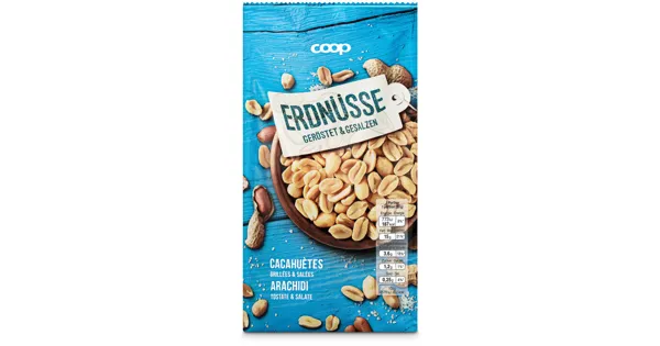Erdnüsse geröstet, gesalzen – Zutaten: ERDNÜSSE, Sonnenblumenöl, Kochsalz. Kann Spuren von BAUMNUSS, CASHEWNUSS, HASELNUSS, MACADAMIANUSS, MANDELN, PARANUSS, PECANNUSS, PISTAZIEN enthalten. Zutaten: ERDNÜSSE, Sonnenblumenöl, Kochsalz. Kann Spuren von BAUMNUSS, CASHEWNUSS, HASELNUSS, MACADAMIANUSS, MANDELN, PARANUSS, PECANNUSS, PISTAZIEN enthalten.