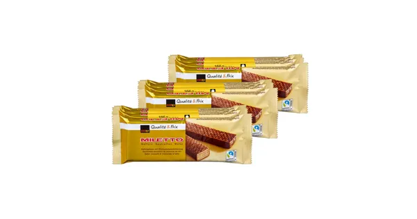 Waffelgebäck mit Milchschokoladeüberzug Die Miletto Waffeln bieten einen knusprigen Genuss für zwischendurch und überzeugen mit ihrer zarten Textur. Sie sind ideal als Die Fairtrade Miletto Waffeln...