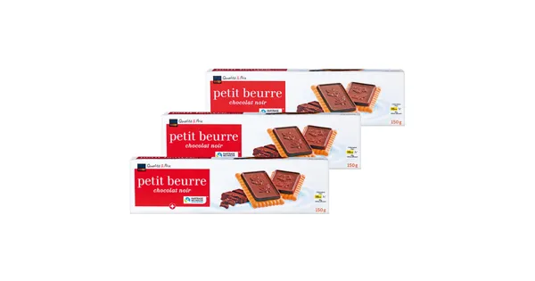 Dauerbackware – Zutaten: Dunkle Schokolade 48% (Zucker, Kakaomasse 16%, Kakaobutter 8%, VOLLMILCHPULVER, eingesottene BUTTER [Schweiz], Emulgator [E 322 ausSOJA], Vanilleschoten), WEIZENMEHL, Zucker, Stärke, Sonnenblumenöl, eingesottene BUTTER 2,5% (Schweiz), EIER*, Invertzuckersirup, MAGERMILCHPULVER, WEIZENGRIESS, Glucosesirup, Kochsalz, Backtriebmittel (E 503), Aroma. Kann Spuren von DINKEL, GERSTE, HAFER, HASELNUSS, KHORASAN-WEIZEN, MANDELN, ROGGEN, SESAM enthalten. * aus Freilandhaltung. Zutaten: Dunkle Schokolade 48% (Zucker, Kakaomasse 16%, Kakaobutter 8%, VOLLMILCHPULVER, eingesottene BUTTER [Schweiz], Emulgator [E 322 ausSOJA], Vanilleschoten), WEIZENMEHL, Zucker, Stärke, Sonnenblumenöl, eingesottene BUTTER 2,5% (Schweiz), EIER*, Invertzuckersirup, MAGERMILCHPULVER, WEIZENGRIESS, Glucosesirup, Kochsalz, Backtriebmittel (E 503), Aroma. Kann Spuren von DINKEL, GERSTE, HAFER, HASELNUSS, KHORASAN-WEIZEN, MANDELN, ROGGEN, SESAM enthalten. * aus Freilandhaltung.