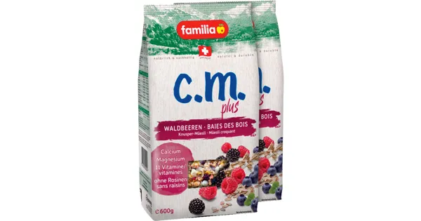 Familia Müesli c.m.plus Waldbeeren ist ein Knuspermüesli mit erfrischenden Waldbeeren und Knusperstückli mit einer zarten Vanillenote. Das ideale Frühstück für einen optimalen Start in den...