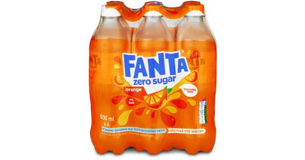 Kalorienfreies Erfrischungsgetränk mit Orangenaroma. Mit Süssungsmitteln 6x0,5L. – Zutaten: Wasser, Orangensaft aus Orangensaftkonzentrat (3%), Kohlensäure, Säuerungsmittel: Citronensäure und Apfelsäure, Süssungsmittel: Cyclamat, Acesulfam K, Sucralose, Stevioglycoside und Neohesperidin DC, natürliches Orangenaroma mit anderen natürlichen Aromen, Konservierungsstoff: Kaliumsorbat, Antioxidationsmittel: Ascorbinsäure, Stabilisator: Quarkernmehl, Farbstoff: Karotine. Zutaten: Wasser, Orangensaft aus Orangensaftkonzentrat (3%), Kohlensäure, Säuerungsmittel: Citronensäure und Apfelsäure, Süssungsmittel: Cyclamat, Acesulfam K, Sucralose, Stevioglycoside und Neohesperidin DC, natürliches Orangenaroma mit anderen natürlichen Aromen, Konservierungsstoff: Kaliumsorbat, Antioxidationsmittel: Ascorbinsäure, Stabilisator: Quarkernmehl, Farbstoff: Karotine.