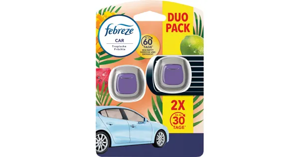 Stell dir vor, du steigst in dein Auto ein, und sofort umhüllt dich der exotische Duft tropischer Früchte. Mit dem Febreze Car Lufterfrischer Duo-Pack wird jede deiner Fahrten zu einem frischen Erlebnis. Dieses leistungsstarke Duo beseitigt nicht nur unerwünschte Gerüche, sondern bringt auch einen langanhaltenden, erfrischenden Duft in dein Fahrzeug – bis zu 60 Tage pure Frische!