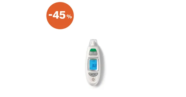 FIEBERTHERMOMETER • zertifiziertes Medizinprodukt • präzise und sekundenschnelle Messung der Körpertemperatur an der Stirn und im Ohr • Zusatzfunktion: Messung von Umgebungstemperatur, Flüssigkeiten und Oberflächen (0 °C – 100 °C) • optischer Fieberalarm durch Farbwechsel • Anzeige von Datum und Uhrzeit • automatische Speicherung der letzten 30 Messwerte • inkl. Batterien: 2 × 1,5 V AAA