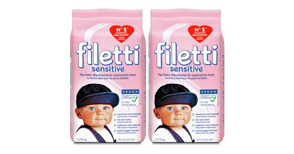 Waschmittel Filetti Sensitive, das Nummer 1 Sensitive-Waschmittel in der Schweiz*Filetti Sensitive, das Spezialwaschmittel in Pulverform, das auf die besonderen Bedürfnisse von Personen mit empfindlicher Haut abgestimmt wurde.Eignet sich sowohl für die Wäschepflege von Babys, Kleinkindern und Allergikern, als auch für die komplette Familie.Enthält reine Seife und hautverträgliche Parfümöle.Verzichtet komplett auf Enzyme und Farbstoffe für eine besonders sanfte Hautschonung.Getestet & bestätigt von der Europäischen Stiftung für Allergie-Forschung (ECARF)*Nielsen Schweiz: umsatzstärkstes Sensitive-Waschmittelmarke (2018) – Zutaten: 5-15%: anionische Tenside, Bleichmittel auf Sauerstoffbasis, < 5%: nichtionische Tenside, Seife, Phosphonate, Polycarboxylate, Weitere Inhaltstoffe: Duftstoffe, Enzyme, optische Aufheller Zutaten: 5-15%: anionische Tenside, Bleichmittel auf Sauerstoffbasis, < 5%: nichtionische Tenside, Seife, Phosphonate, Polycarboxylate, Weitere Inhaltstoffe: Duftstoffe, Enzyme, optische Aufheller
