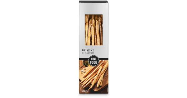 Dauerbackware mit Trüffelaroma – Zutaten: WEIZENMEHL, Wasser, Trüffelaroma 3,5%, natives Olivenöl extra, Meersalz, GERSTENMALZEXTRAKT, Hefe. Kann Spuren von DINKEL, HAFER, KHORASAN-WEIZEN, ROGGEN enthalten. Zutaten: WEIZENMEHL, Wasser, Trüffelaroma 3,5%, natives Olivenöl extra, Meersalz, GERSTENMALZEXTRAKT, Hefe. Kann Spuren von DINKEL, HAFER, KHORASAN-WEIZEN, ROGGEN enthalten.
