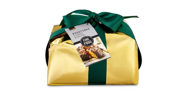 Panettone – Zutaten: Weissmehl (WEIZEN), Zucker, kandierte Orangenschalen 20% (Orangenschalen, Glucose-Fructosesirup, Zucker), eingesottene BUTTER, Glasur 10% (Zucker, EIWEISSPULVER*, MANDELMEHL,...