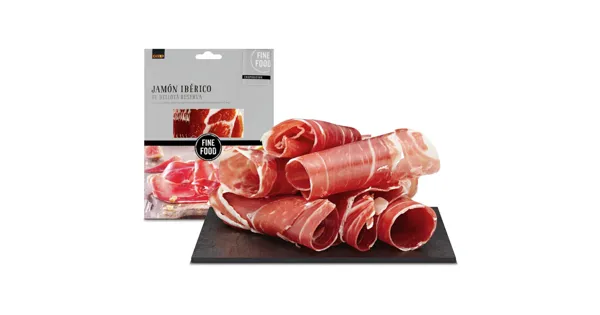 Schweinefleischerzeugnis gepökelt Beschreibung: Schweinefleischerzeugnis zum Rohessen. Pata Negra 32 Monate gereift. Lagerung: Ohne Kühlung haltbar. Rohstoffherkunft: Spanien: Schweinefleisch – Zutaten: Schweinefleisch (Spanien), Nitritpökelsalz (Meersalz, Konservierungsstoff [E 250]), Zucker, Konservierungsstoff (E 252), Antioxidationsmittel (E 301). Zutaten: Schweinefleisch (Spanien), Nitritpökelsalz (Meersalz, Konservierungsstoff [E 250]), Zucker, Konservierungsstoff (E 252), Antioxidationsmittel (E 301).