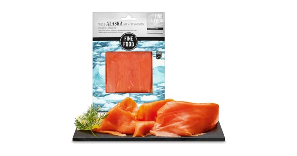 Silberlachsfilets (Oncorhynchus kisutch), geräuchert Kulinarisch hochgeschätzt und heissbegehrt. Dieser eher kleine pazifische Wildlachs lebt im Eismeer und den nordpazifischen Küstengewässern. Sein Fleisch ist zart und kräftig im Aroma. Die erste und älteste Lachsräucherei der Schweiz verarbeitet mit viel geschickter Handarbeit die rohen Lachse zu dieser einzigartigen und qualitativ hochwertigen Gaumenfreude. Auf Buchen- und Eichenholz werden die Fische im traditionellen Holzofen nach dem von Generation zu Generation überlieferten Originalverfahren kalt geräuchert. – Zutaten: SILBERLACHS (gefangen im Nordostpazifik, Kiemennetze und vergleichbare Netze [Treibnetze]), Meersalz, Glucose, Antioxidationsmittel(E 301). Zutaten: SILBERLACHS (gefangen im Nordostpazifik, Kiemennetze und vergleichbare Netze [Treibnetze]), Meersalz, Glucose, Antioxidationsmittel(E 301).
