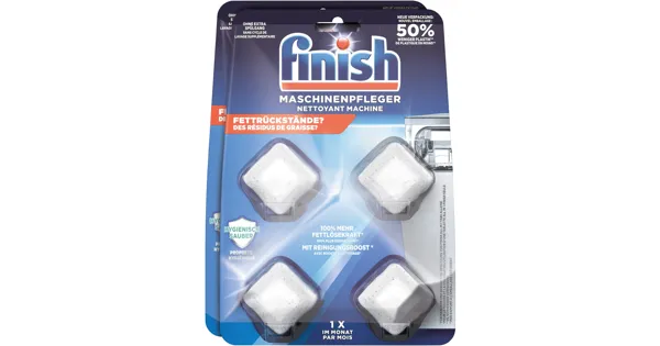 Die Reinigungstabs von Finish sollten 1 x im Monat angewendet werden. Sie entfernen Schmutz und Ablagerungen in der Geschirrspülmaschine durch die spezielle fettlösende Formel. Die Maschinenpfleger von Finish sind bekannt für die Unterstützung von einer sauberen und langlebigen Spülmaschine.