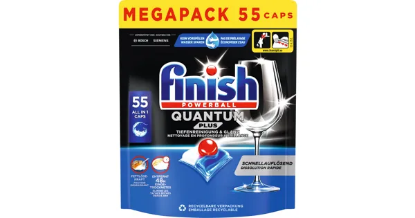Mit den Finish Quantum Plus Tabs Fresh erhältst du eine herausragende Reinigungsleistung für dein Geschirr, verbunden mit einem erfrischenden Duft. Die fortschrittliche Formel löst selbst hartnäckigste Verschmutzungen und Fettreste mühelos, für strahlend sauberes Geschirr bei jedem Spülgang. Vertraue auf die bewährte Qualität von Finish Quantum Plus Tabs Fresh für ein makelloses Ergebnis und einen langanhaltenden Frischeduft in deiner Küche.