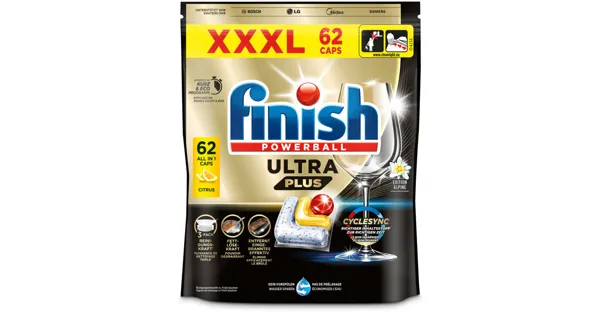 Zutaten: 15 - <30 % Bleichmittel auf Sauerstoffbasis, 5 - <15 % nichtionische Tenside, 5 - <15 % Polycarboxylate, 5 - <15 % Phosphonate. Enzyme (SUBTILISIN, α-AMYLASE), Duftstoffe (CITRONELLOL).